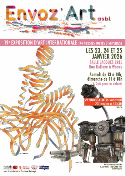 Du 23 au 25 janvier 2026, Gil participera à la 19ème Exposition d’Art internationale organisée à la salle Jacques Brel de Wanze (Huy).